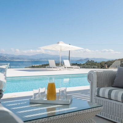✔ A private pool with panoramic views of the Aegean Sea, perfect for cooling off while enjoying the serene atmosphere.